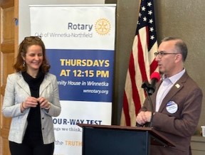Thomas Applegate, our membership chair, inducted our newest club member, Karla Garjaka, presenting her with a welcome packet and the traditional Rotary pin. Karla previously belonged to the Waikiki Rotary Club, where she served on mental health and “Dictionary” literacy projects.